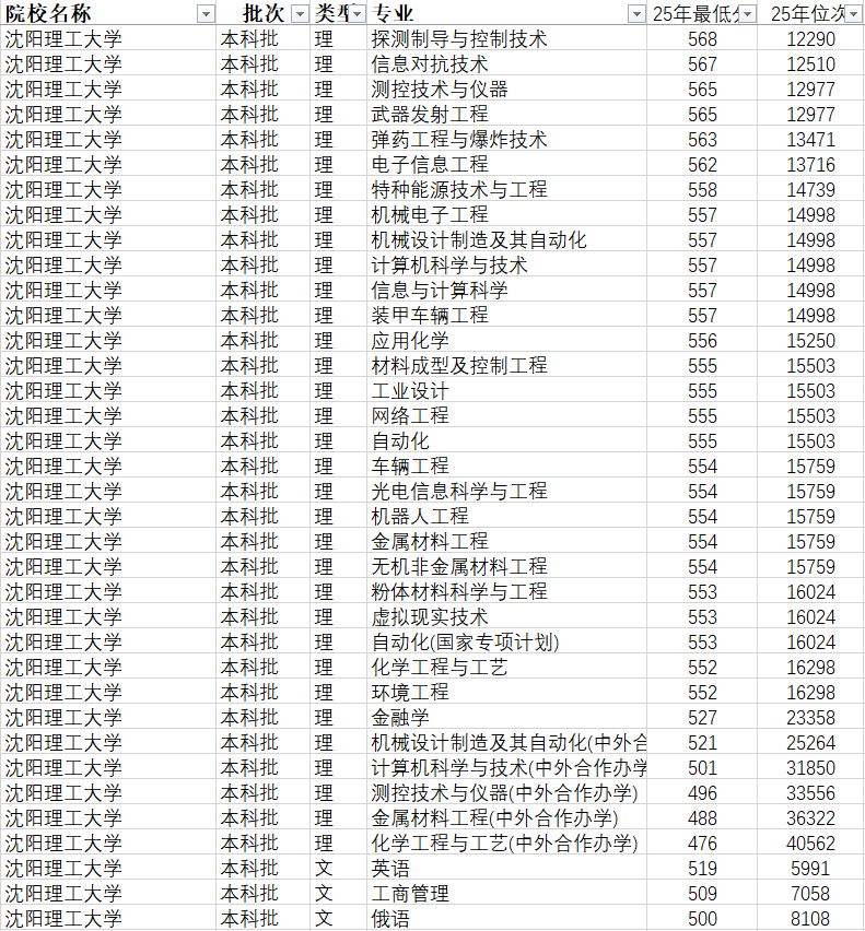 :物理类的探测制导取节制手艺、机械设想制制及其从动化、计较机科学取手艺、弹药工程取爆炸手艺、汗青类仅少量专业(如英语、俄语、工商办理)招生,2025年物理类通俗类登科最低分527分(省内位次23358),中外合做办学登科最低分476分(省内位次40562),焦点适配物理类考生。